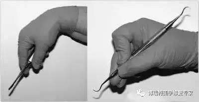 器械握持过紧:握持过紧时,食指的远心端指关节是平直的或过度伸展的。