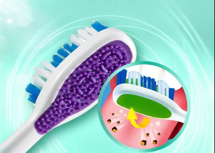 舌苔是细菌的培养基,容易造成细菌堆积。市面上不少刷头背面设计出颗粒或纹理,帮助清洁舌苔,在选择牙刷时,刷头厚度一般不超过5毫米,防止动作过大,伤害牙龈与口腔内部组织。