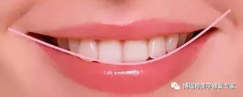 两中切牙间接触点最低,越靠后的牙齿邻接点越高,邻接点连线与下唇弧度协调。