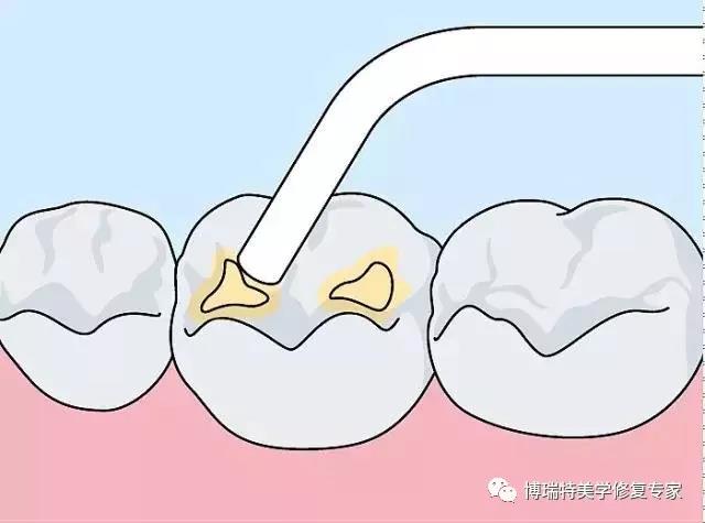 注意酸蚀剂涂布的面积不能过大,否则可能腐蚀牙龈;另外,还应注意隔湿,防止舌体运动碰及酸蚀剂导致的腐蚀;下颌磨牙的颊沟、上颌磨牙的舌(腭)沟要酸蚀到,不要遗漏;无论上磨牙,还是下磨牙,视野不是十分清楚时应配合口镜的使用,避免遗漏牙面窝沟的酸蚀。