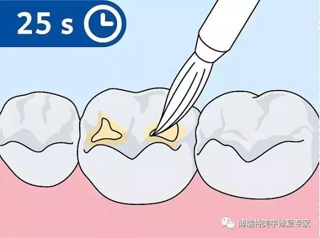 光固化封闭剂涂布后,立即用光固化灯照射。照射时尽量靠近,但不能接触牙面。修复:2毫米薄层应用材料。垫底:应用层(1毫米厚度)。照射时间要根据采用的产品类型与可见光源性能决定,一般为20~40秒。采用自凝固化封闭剂时,每次封闭前要取等量A、B组分调拌混匀。通常调拌10~15秒。调拌时要避免产生气泡。自凝封闭剂固化时间一般为1分钟。调拌涂布要掌握好时机,在初凝阶段前完成。涂布后不要再污染和搅动。