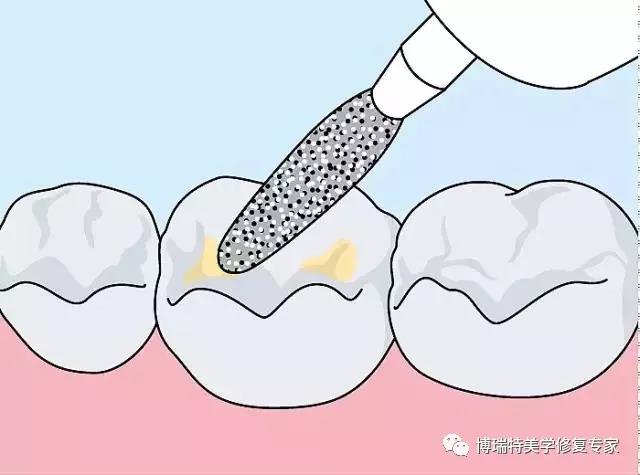 酸蚀与封闭前首先应对牙面,特别是窝沟作彻底清洁,方法是在低速手机上装好锥形小毛刷或橡皮杯,蘸上适量清洁剂刷洗牙面(也可采用干刷)。