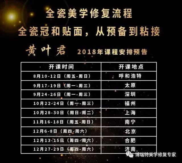 2016年黄老师在重庆、长沙、呼和浩特、银川、威海等多地举办全瓷美学修复流程和牙体预备实操班,深受学员高度好评,毫无保留的分享。简单易懂,回去就能应用到临床当中。