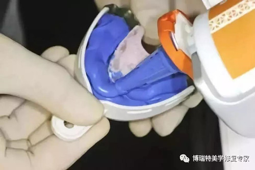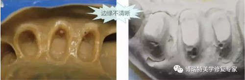 建议:重取模,增加托盘与印模料固位安装,防止以上不良景象。