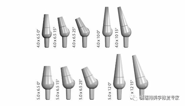 可分为直基台(straight abutment)和角度基台(angle abutment)。直基台常规用在种植体长轴良好,不需要角度补偿的情况下。然而,在临床工作中,经常会因为骨量不足,牙合关系异常,张口受限,医师经验不足等,需要角度基台来调整种植体长轴,完成种植修复。