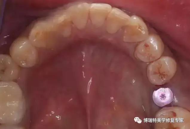 种植体长轴唇倾、种植深度不足、牙龈菲薄及退缩都有可能导致基台金属透色或暴露,这时可以考虑使用个性化氧化锆基台;美学区合理使用临时基台对牙龈袖口塑型配合最终个性化基台修复实现美学效果;对于螺丝孔影响美观的可以考虑使用粘接固位基台或者角度螺丝通道基台,将螺丝孔放置在不影响美观的位置,螺丝孔开口角度可在0°~25°作调整,利用特定的基台螺丝和ASC螺丝刀。