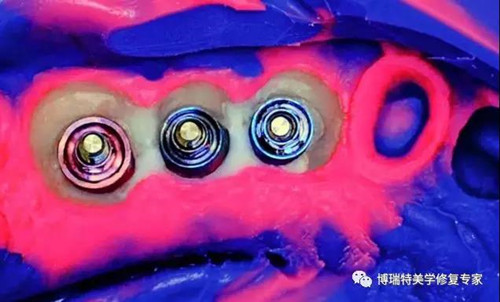 这一技术降低了复位过程中出错的风险,该风险会影响技工室的口腔修复制作阶段。此外,这种方法在转移杆特别长、倾斜和偏离的情况下特别适用。在上述情况下,使用低收缩树脂接合转移杆就变得非常重要,以便稳固转移杆并最小化避免微小移动。