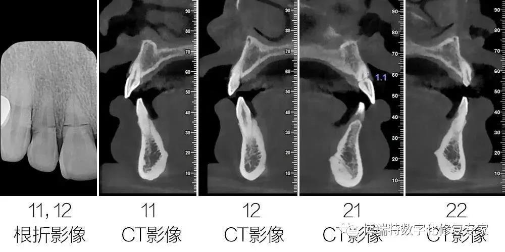 8226; CBCT检查显示11,12见根颈1/3根折线,无明显移位;