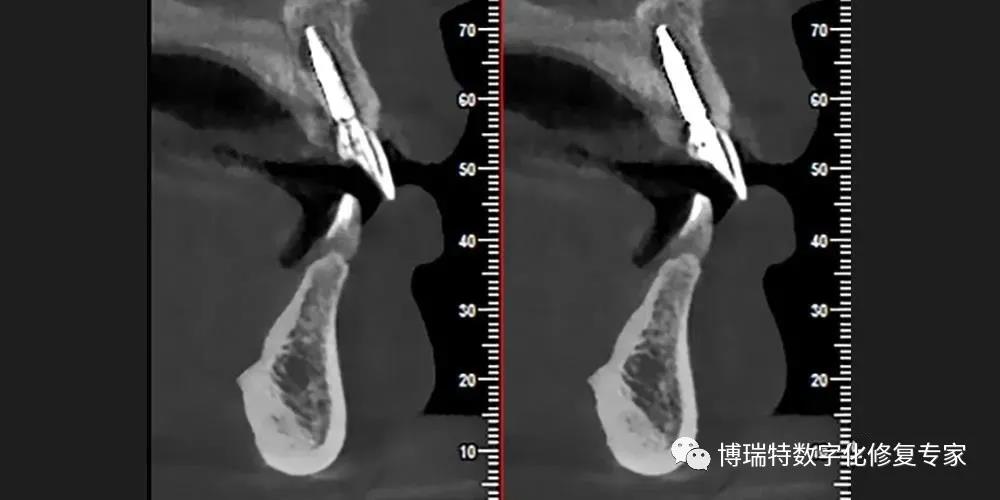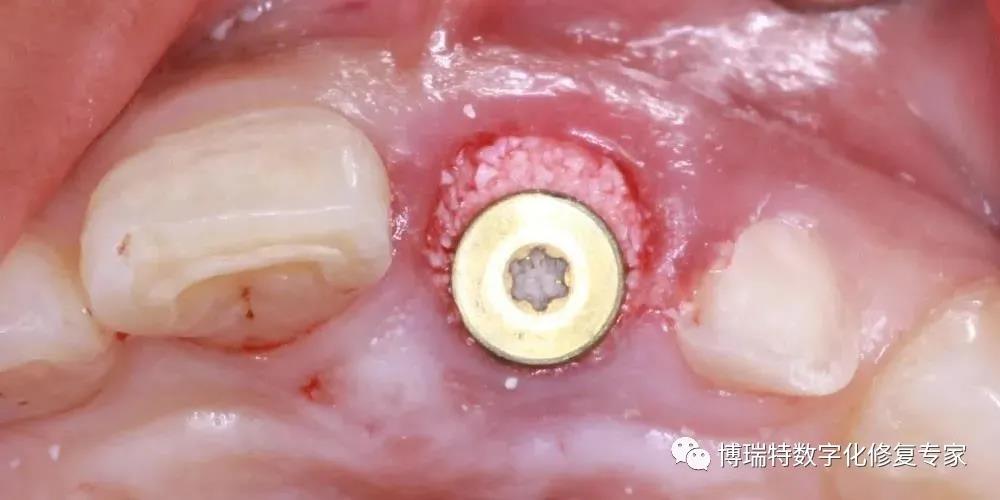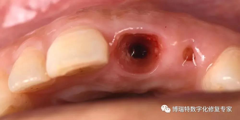 8226; 该患者21唇侧骨板完整,厚度1mm,根部骨量充足,按照经典即刻种植要求,牙龈要求为厚龈型,故交代软组织增量可能;