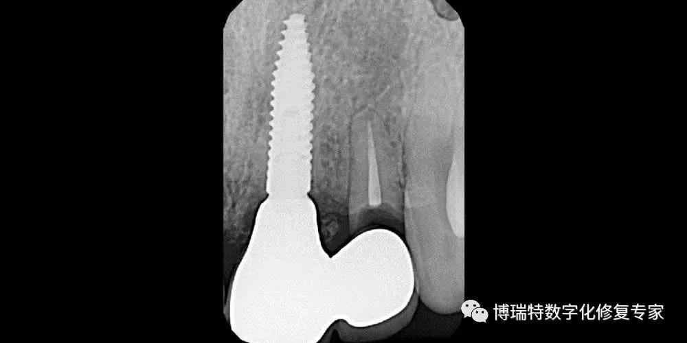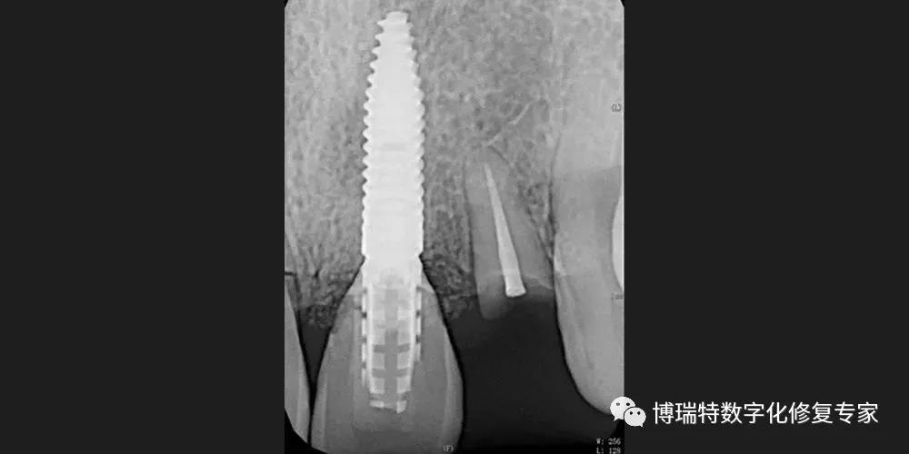 8226; 术后根尖片显示临时基台就位良好;