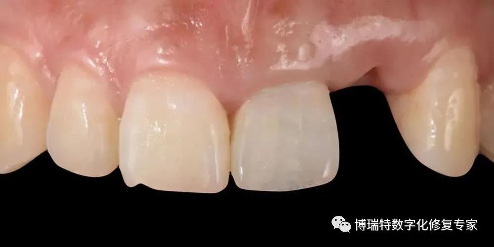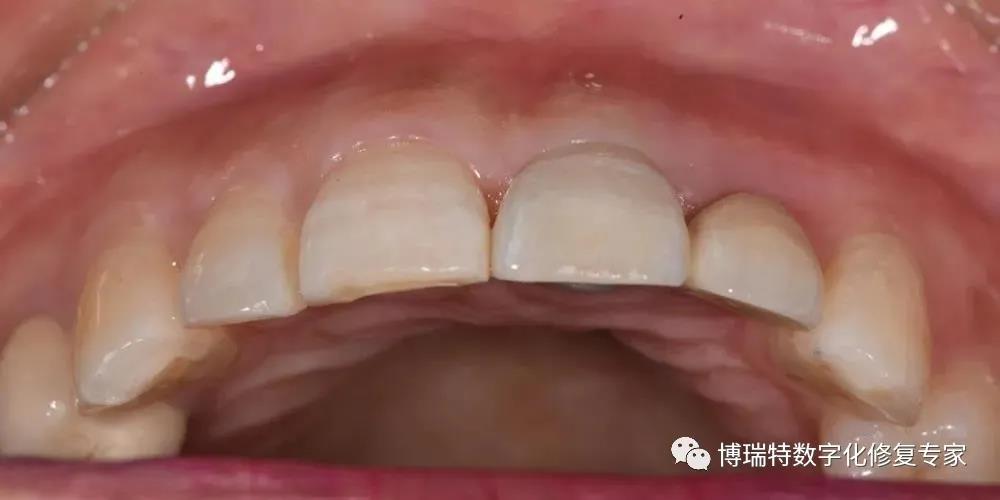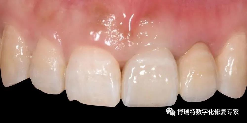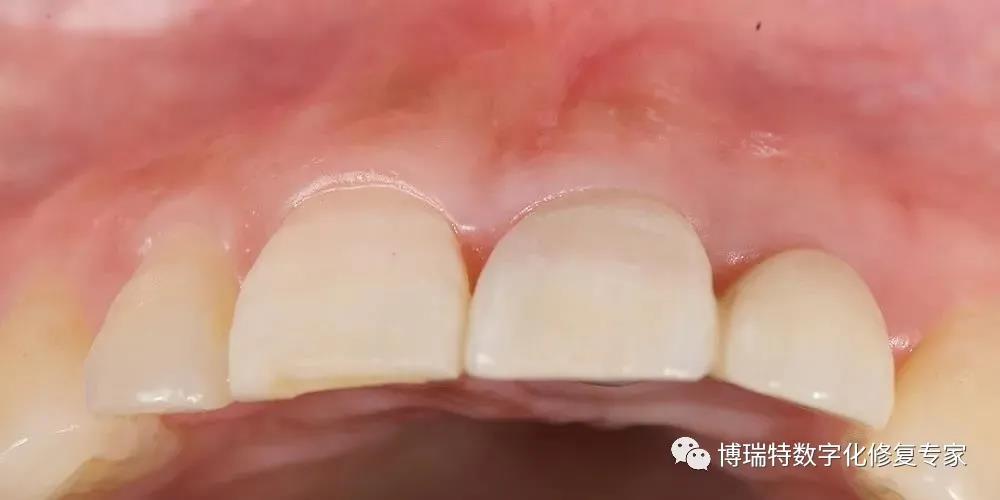 8226; 临时冠戴入3个月后,可见21、22间牙龈乳头冠向生长,前牙区龈缘对称,软组织获得良好的穿龈轮廓形态;