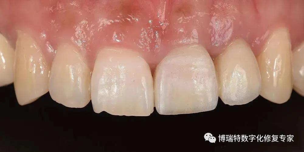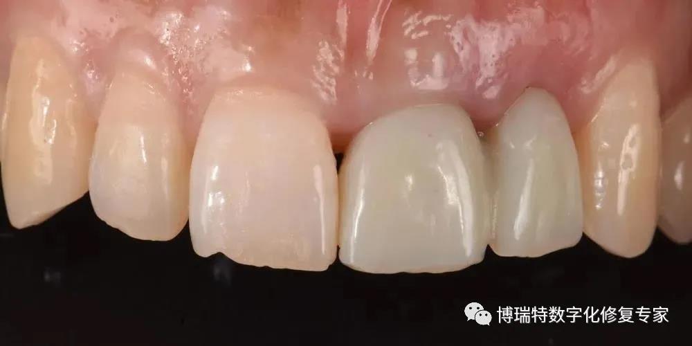 8226; 牙冠形态颜色协调,轮廓及龈缘形态基本协调对称,红白美学效果较理想;