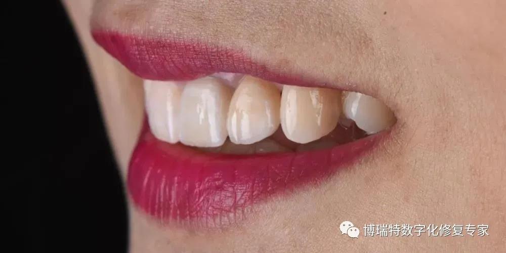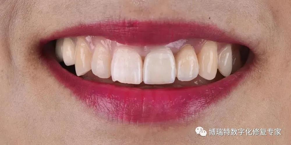 本病例我们运用软组织管理理念,通过对临时修复体外形进行设计和调整,最终获得了较为满意的美学效果,避免了软组织手术对患者带来的额外创伤和痛苦。